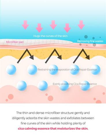 A fine microfiber pad that contains abundant highly enriching essence containing Cica Complex and Tea Tree Leaf extract that calms irritated skin resulting from the external environment. It provides gentle exfoliation while soothing the sensitive skin, leaving it moist and smooth.